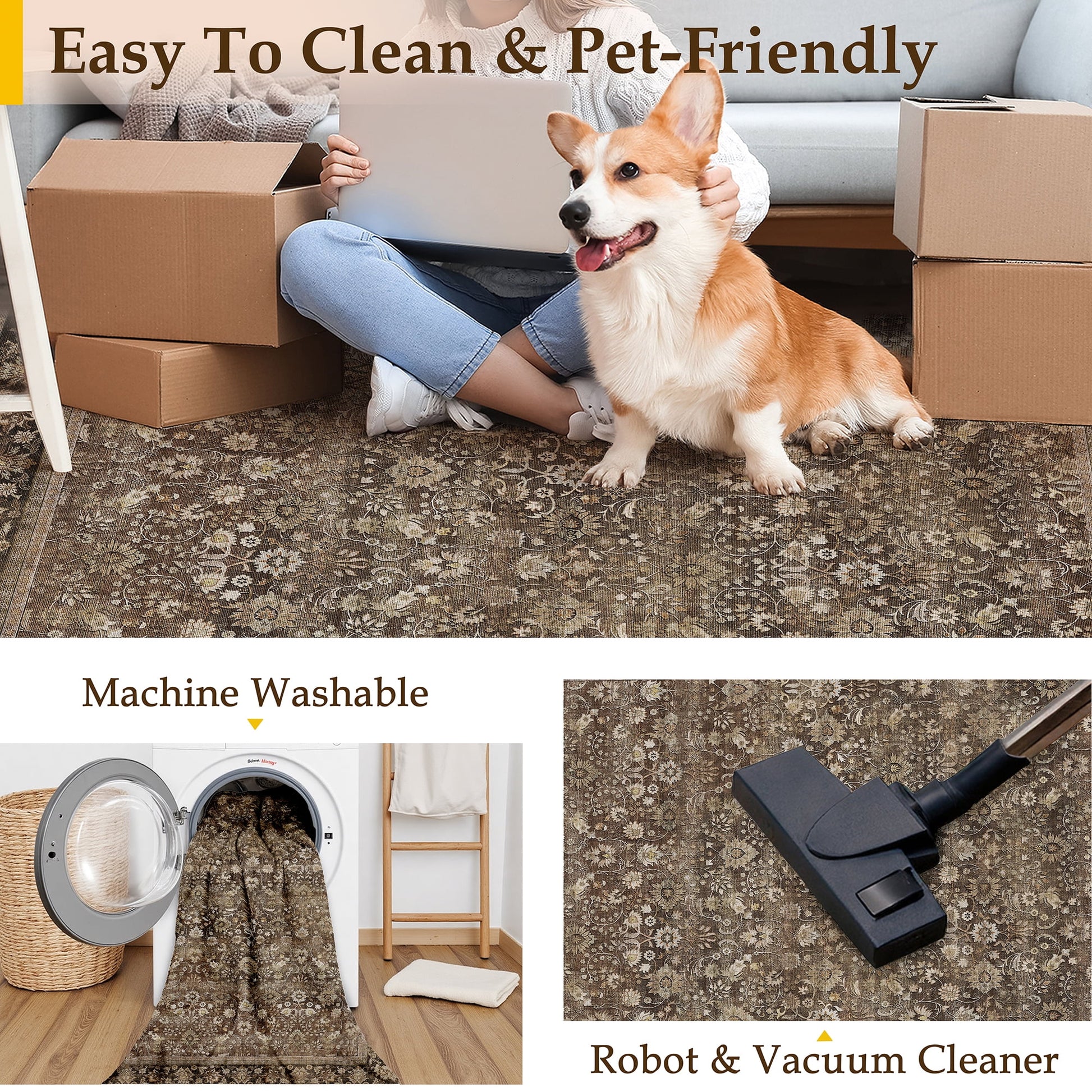 BERTHMEER 8'x10' Large Brown Area Rugs Vintage Oriental Traditional Rugs for Living Room Bedroom Dining Room Farmhouse Machine Washable Non-slip