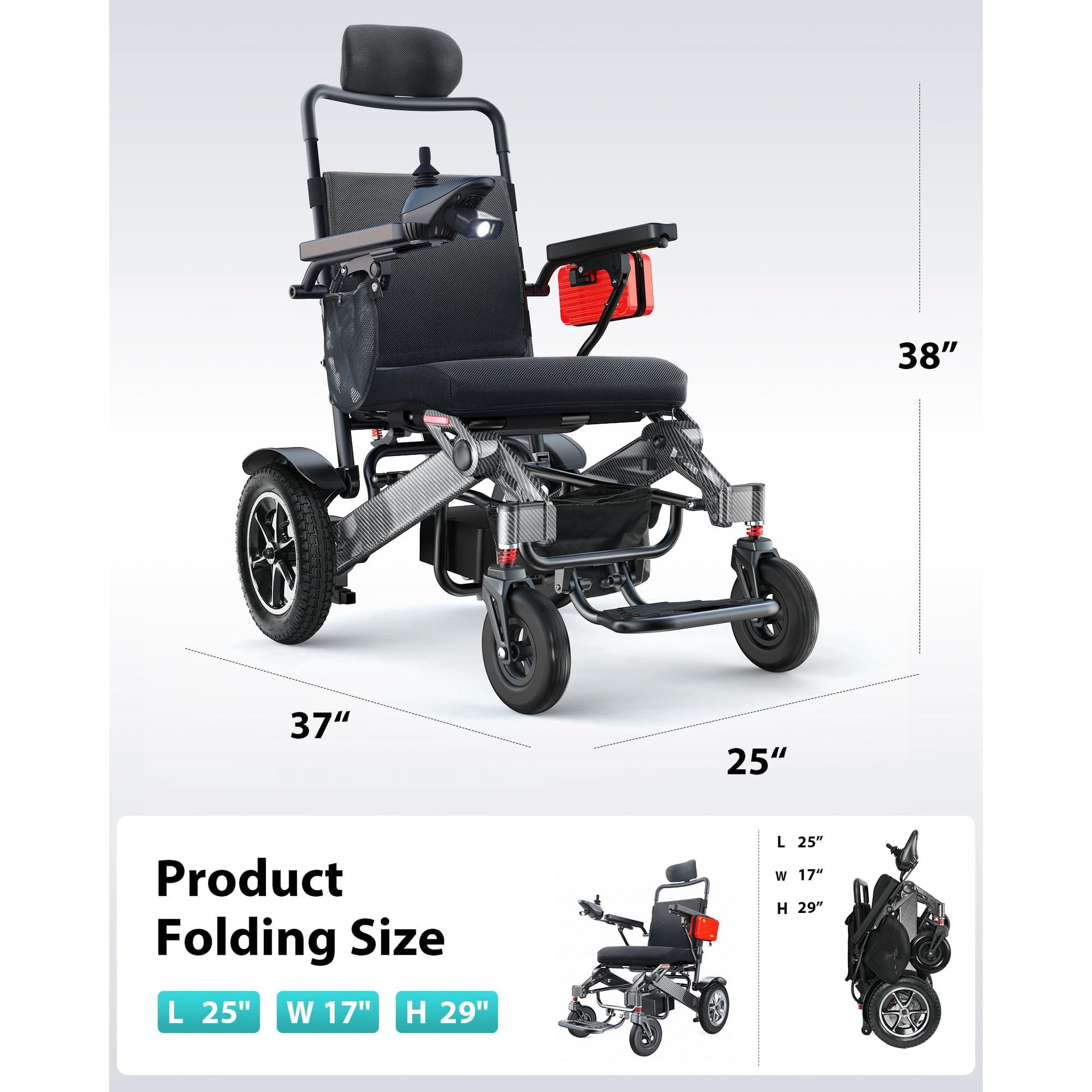 Fluey Folding Electric Wheelchair for Adults with 500W Motor, 25mi Range, Reclining Seat & All-Terrain, 400lb Limit