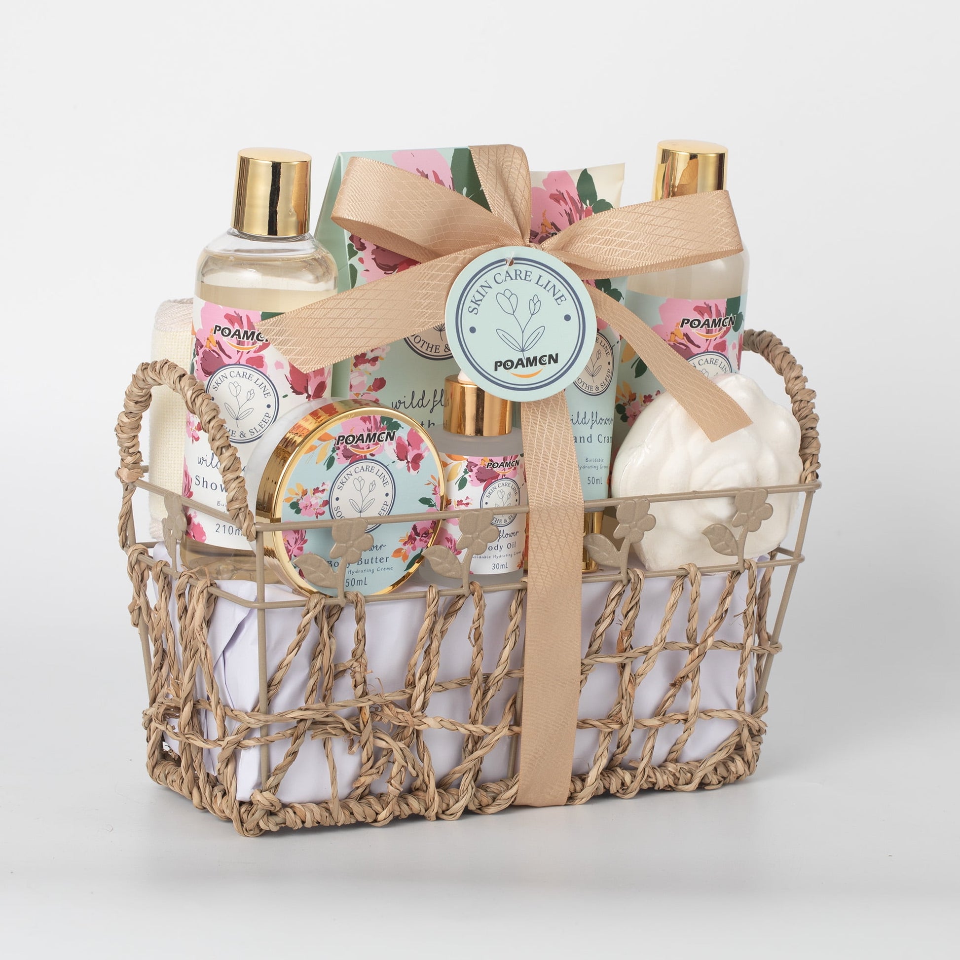 - Deluxe 9 Piece Set:This spa gift basket has everything a woman needs! It is the perfect Birthday Gifts for Women. It includes 210ml Shower Gel,210ml Bubble Bath,100ml Body Lotion,50ml Hand Cream,100g Bath Salt,50ml Body Butter,30ml Body Oil,100g Bath Bomb and Loofah Back Scrubber 1 Pc.Packed in a stunningly wrapped in a handmade basket for you to personalize it.
