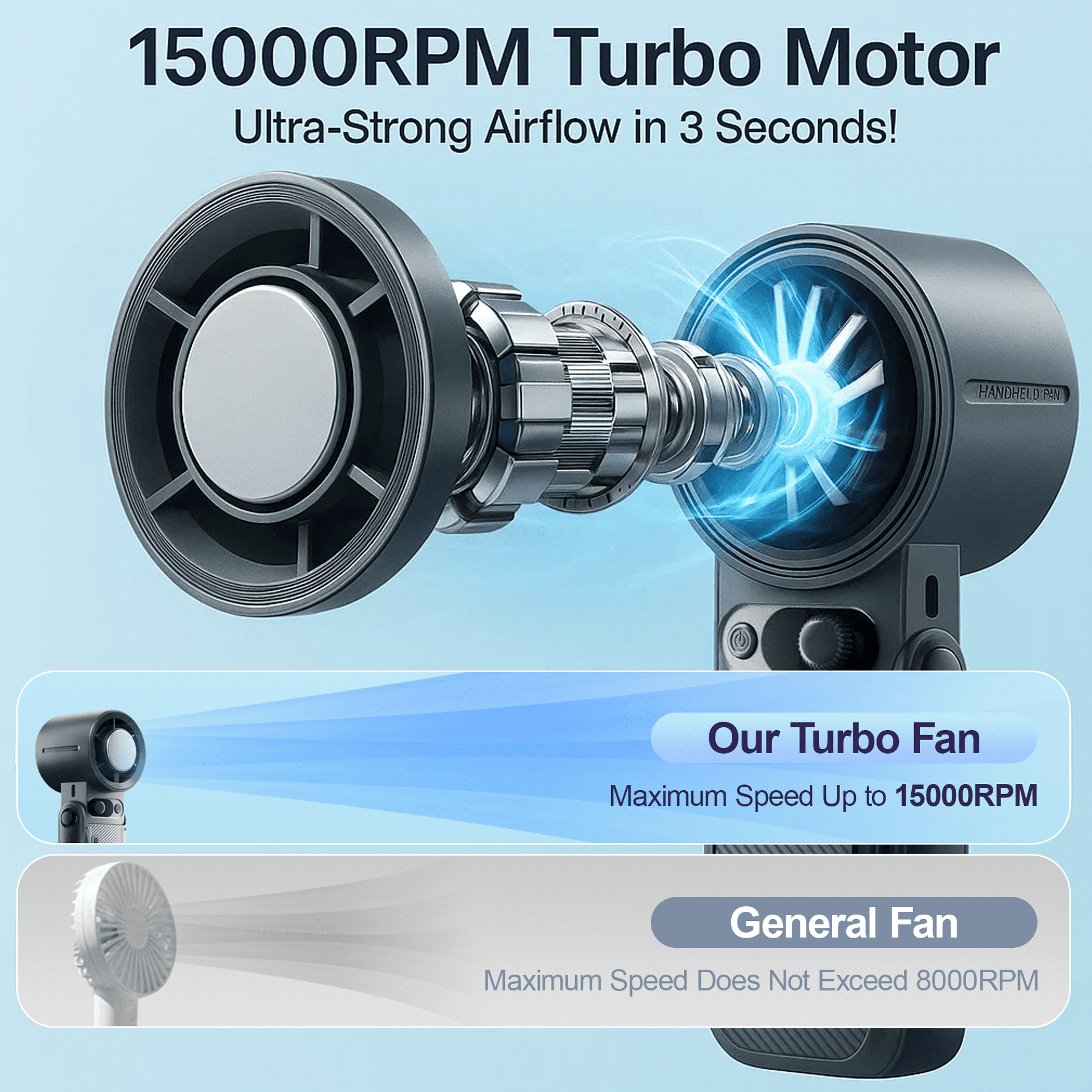 Portable Handheld Turbo Fan with Ice Cooler Technology – 199-Speed High-Speed Cooling Fan Up to 44 Working Hours Type-C Fast Charge Ultra-Quiet & Lightweight, Gray
